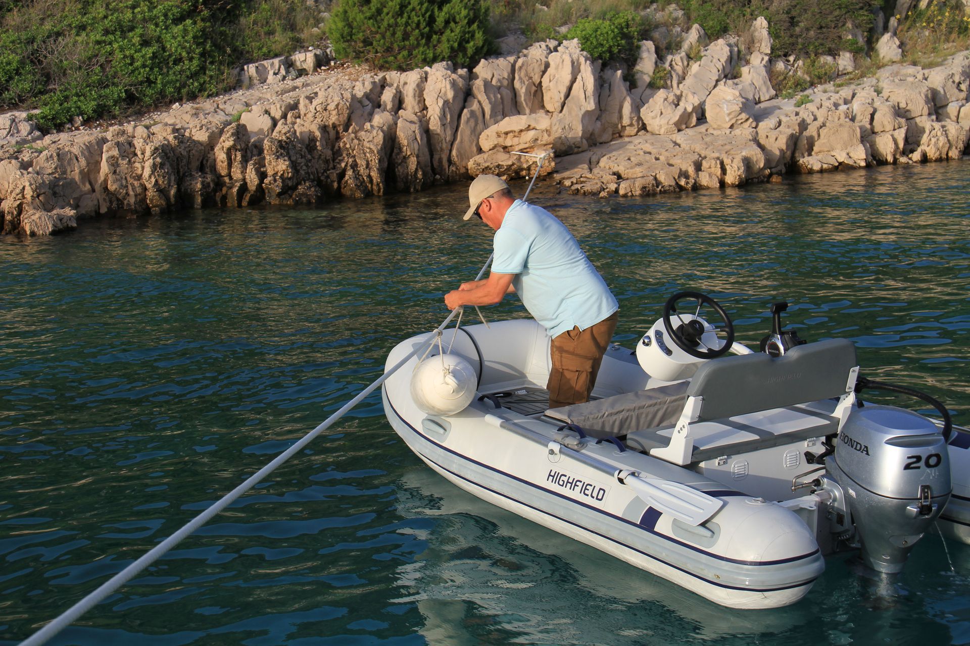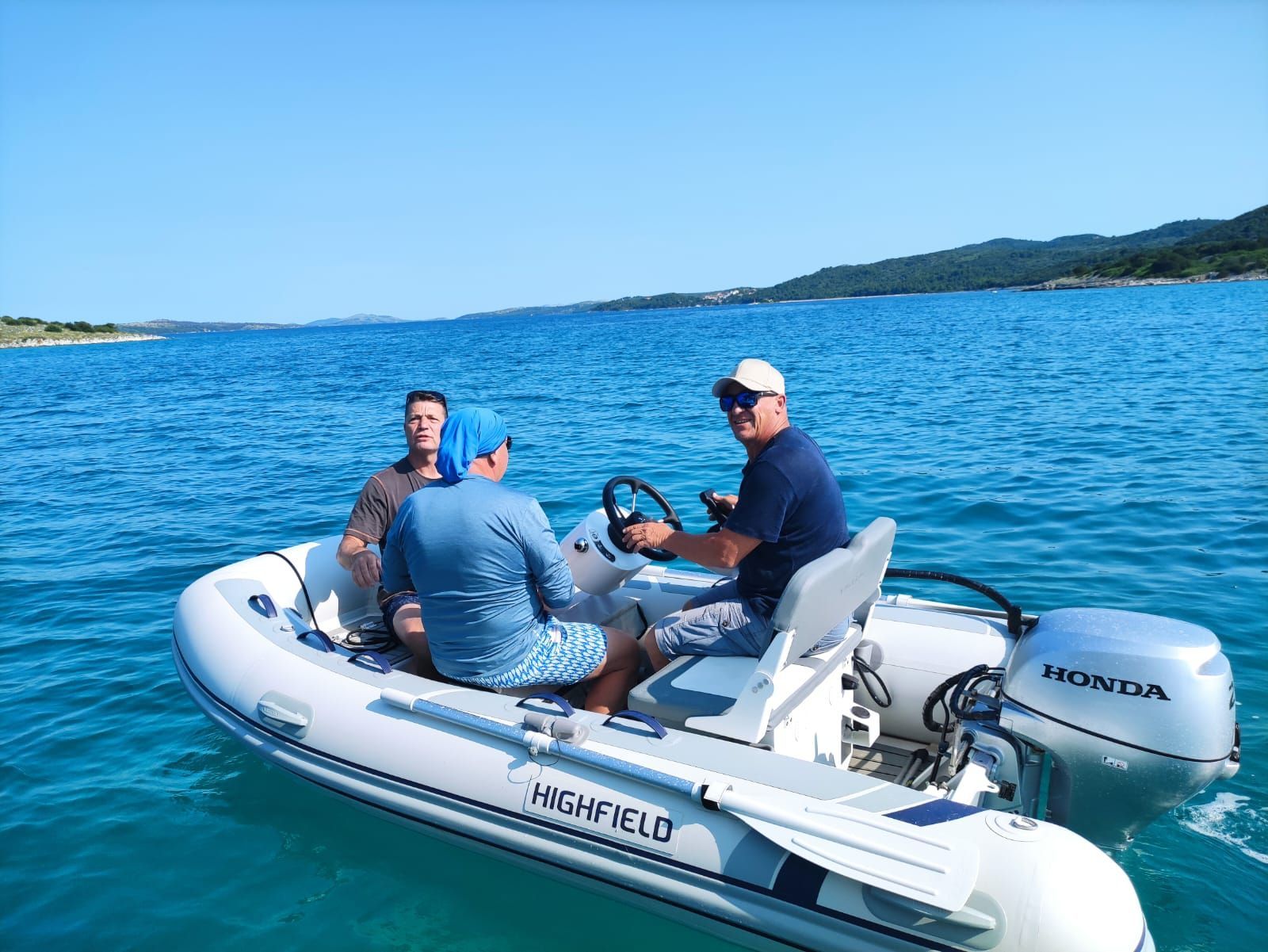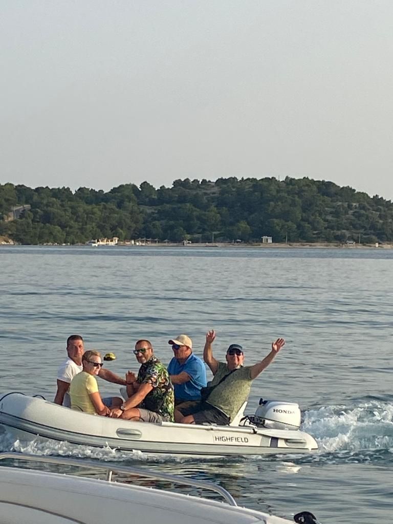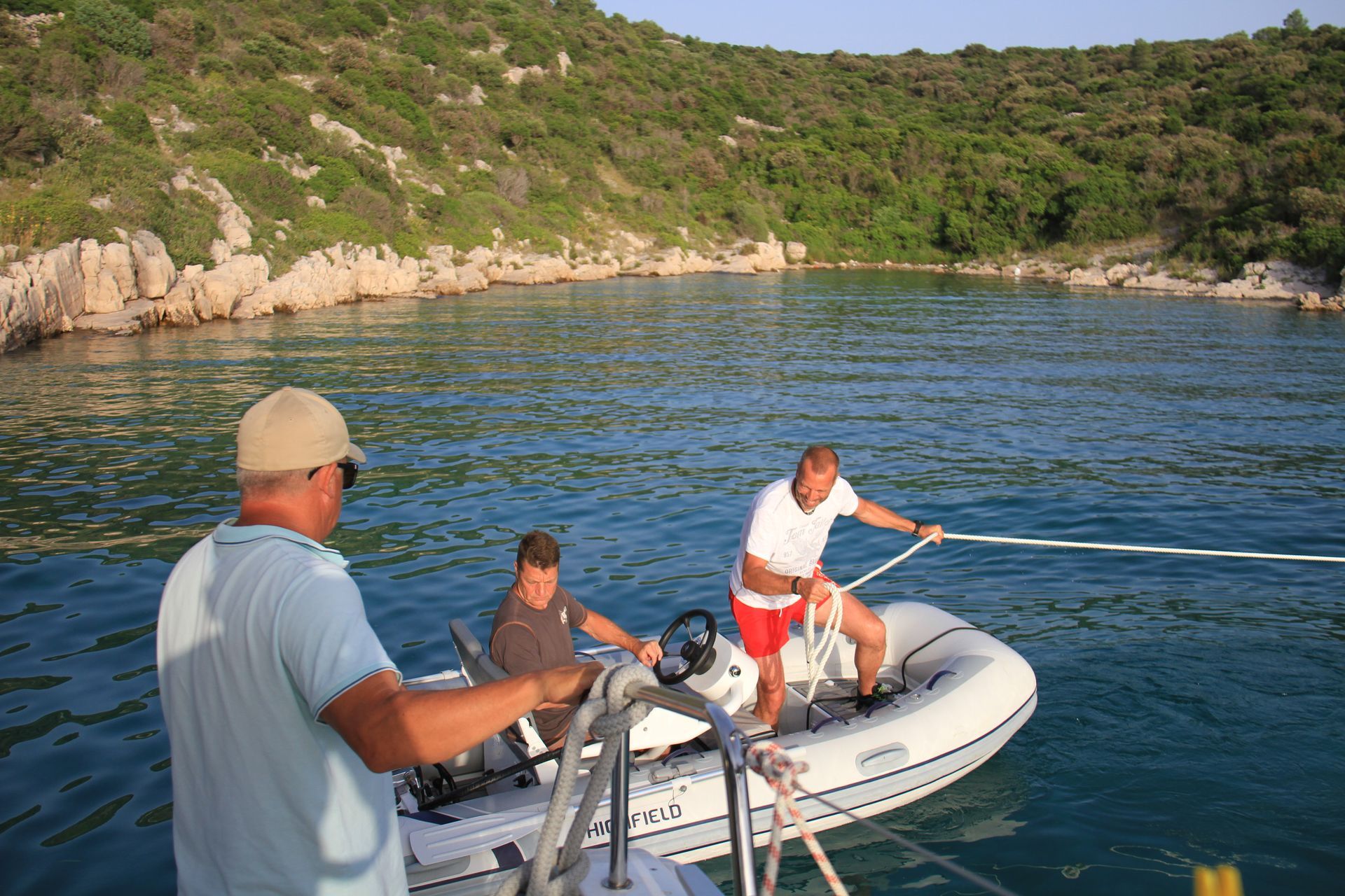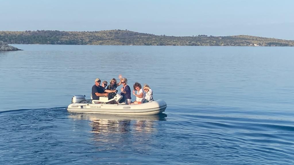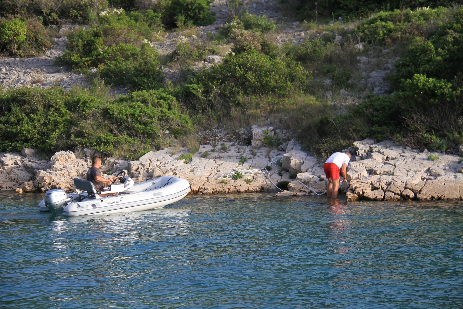 Abends legen wir vor der Insel Dugi in einer Bucht den Anker. Von Gerhard werden wir mit dem Dingi nach Sali zum Restaurant gebracht. Die Fahrt ist in zwei Etappen, da wir nicht alle zusammen in das Beiboot passen. Im Dunkeln zurück ist schon mal ein Erlebnis.