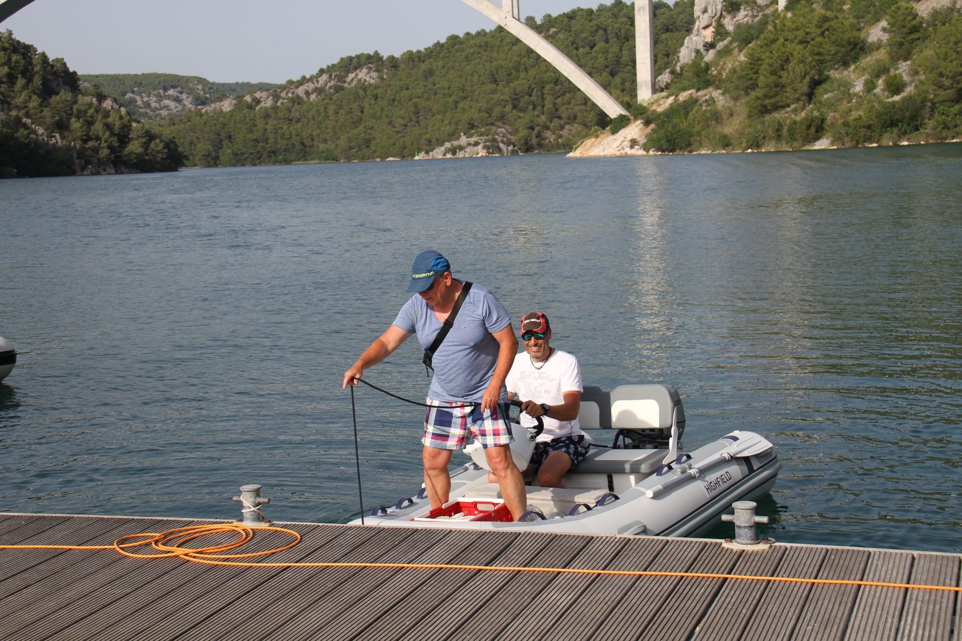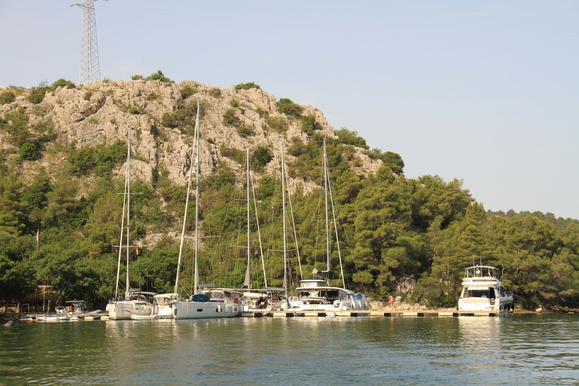 Nach dem Frühstück geht es gemütlich weiter Richtung Skradin zum Krka Nationalpark. Zwischendurch Spaß im Wasser. Die Fahrt schlängelt sich durch eine Meeresbucht. Wir legen an dem Steg eines Restaurants an und bleiben hier über Nacht.
