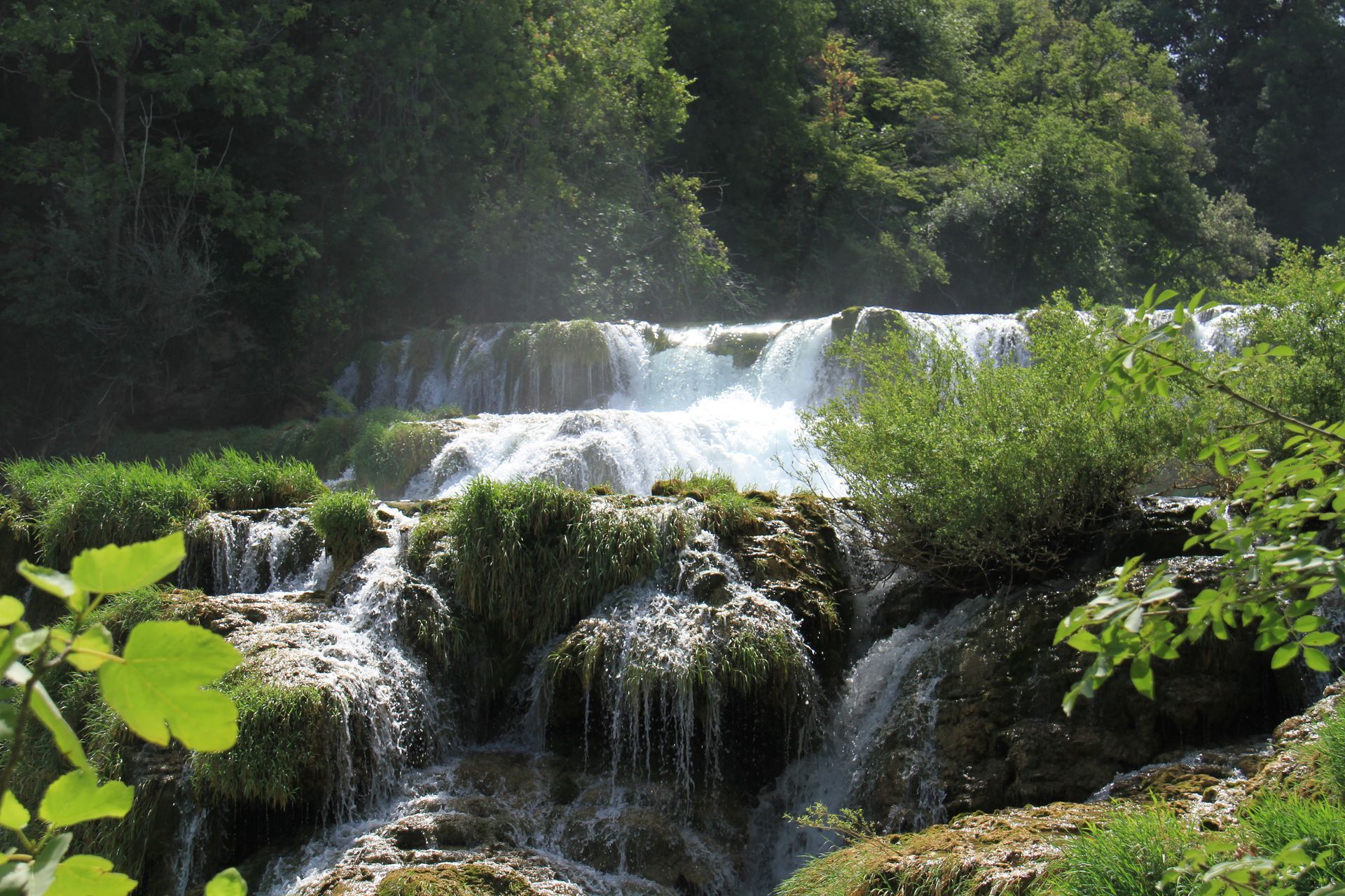 Heute heißt es zeitig aufstehen. Wir wollen zu den Wasserfällen im Krka Nationalpark. Da wir mit dem Boot nicht hineindürfen, bringt uns Gerhard mit dem Dingi nach Skradin. Wir entscheiden uns, den vier Kilometer Hinweg zu wandern und für den Rückweg die Fähre zu nehmen. Der Eintritt zum Nationalpark kostet pro Person 40 Euro. Eine Frechheit! Leider wurde für uns das Ticket schon gekauft, sonst hätten wir großzügig auf den Wasserfall verzichtet. In der Nebensaison kostet der Eintritt 25 Euro und in der Nebennebensaison 7 Euro. Wie soll man das verstehen?