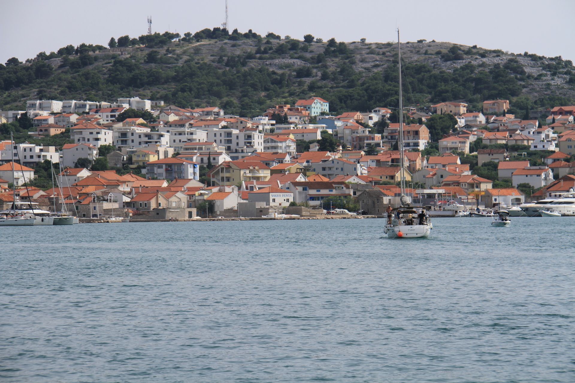 Frühmorgens wieder Paddeln und Schwimmen. Nach dem Frühstück heißt es Leinen los zur Insel Murter. Zwischendurch ein Stopp für Spaß im Wasser. In der Marina von Murter müssen wir den Katamaran auftanken. Wir fahren bis zu einer Bucht vor dem Ort Tisno. Gerhard bringt uns mit dem Dingi zu einem sehr guten Restaurant (Prova – sehr zu empfehlen). Zum ersten Mal haben wir in Kroatien gut gegessen. Hier hat einfach alles gepasst. Die Nacht wird leider etwas schlaflos, da Leute von Mitternacht bis 5 Uhr morgens eine lautstarke Party veranstalten.